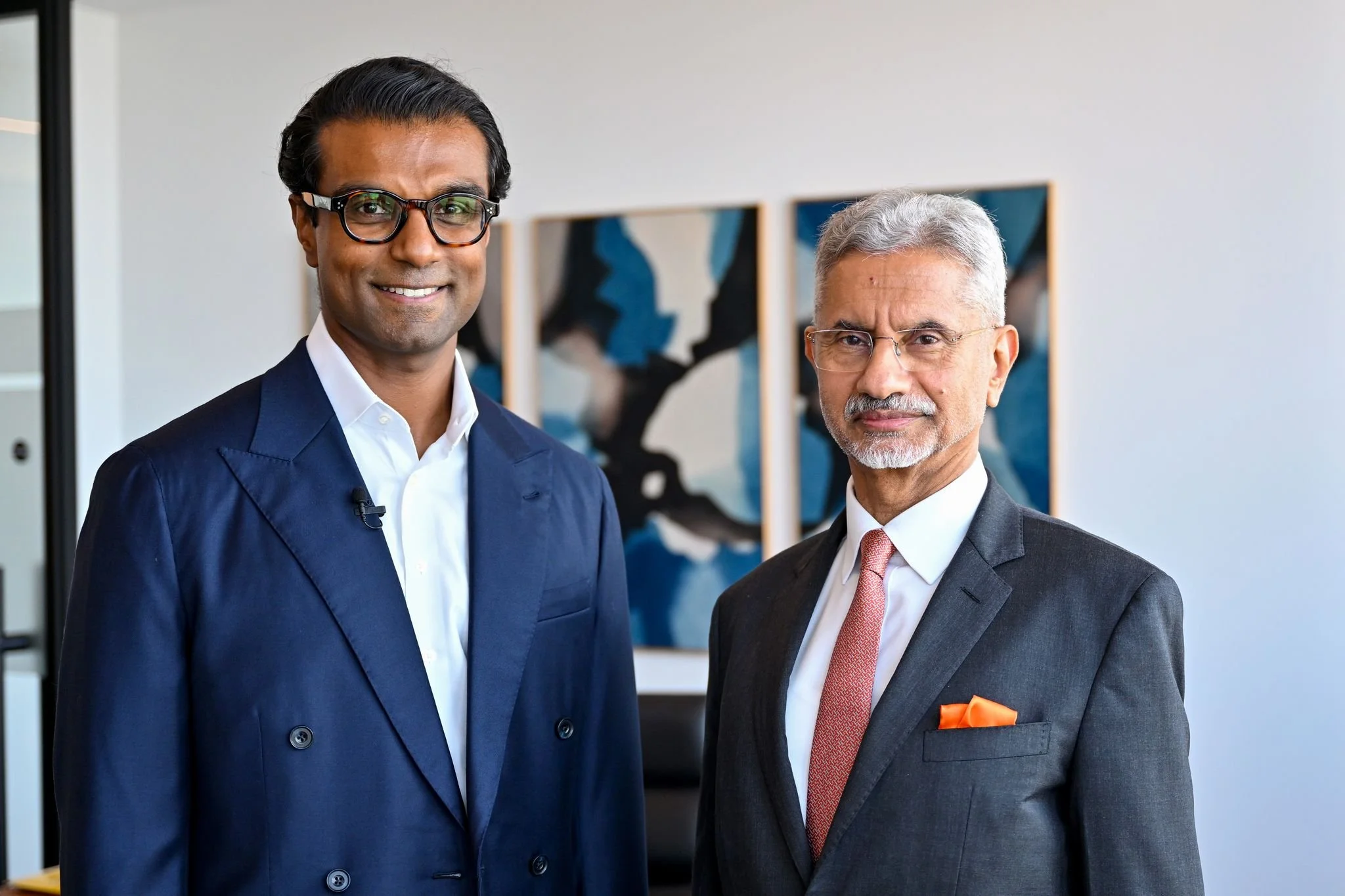 Dev Pragad with Dr. S. Jaishankar at Newsweek HQ in New York.