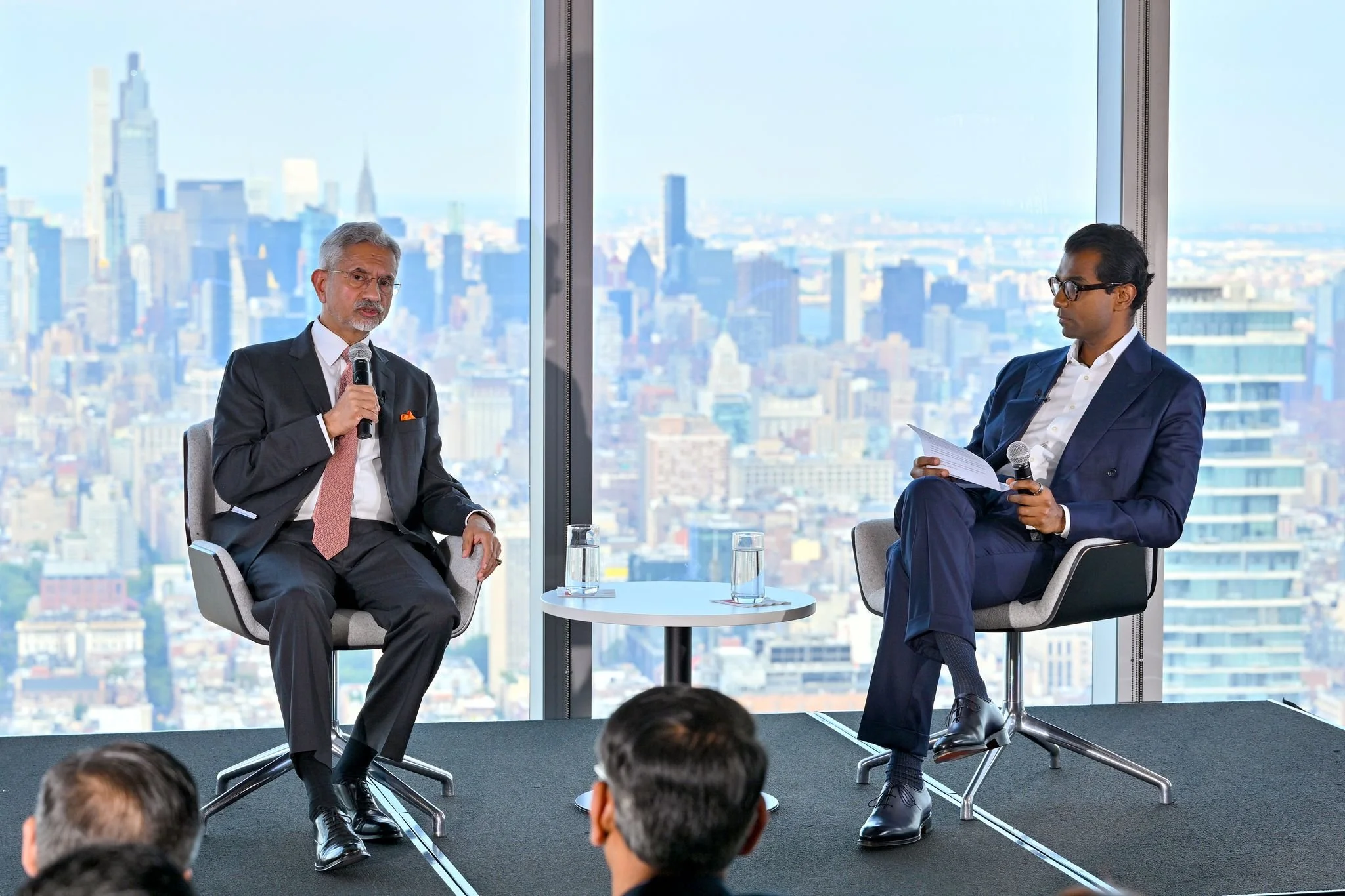 Dev Pragad hosts Indian External Affairs Minister Dr. S. Jaishankar at Newsweek HQ in New York.
